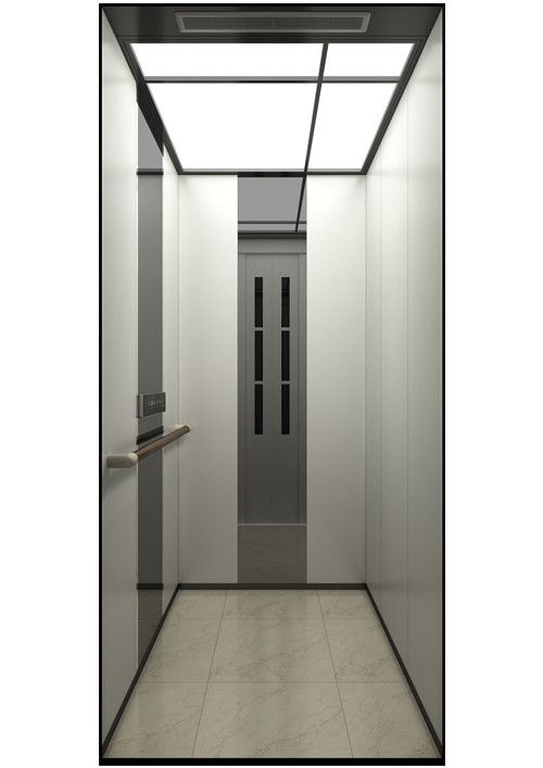 天井:ECO-ZL,金屬烤漆(YM-14)  前側板:金屬烤漆(YM-14)  門楣:金屬烤漆(YM-14)  兩側:左側金屬烤漆(YM-14)/右側彩紋鋼板(KB05)  后側板:鏡面不銹鋼+彩紋鋼板(KB05)  轎門:金屬烤漆(YM-14)  操作盤:BD-D2F8(發紋不銹鋼)  扶手:WIN-002(發紋不銹鋼)  地板:PVC(FL-P17)